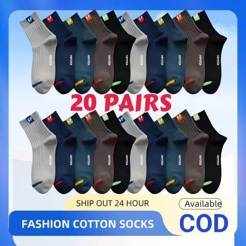 20 minutes AgoFreeShiping [10 pairs per bag] (Sizes: 36-43) Men's cotton socks, simple style, lettered mid-tube jacquard casual socks - FreeShiping-20Pairs-onlyP299